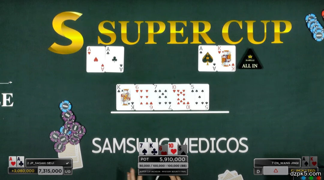 SHOW CARDS:王金琦A♠K♥ ;SASAKI A♥A♣