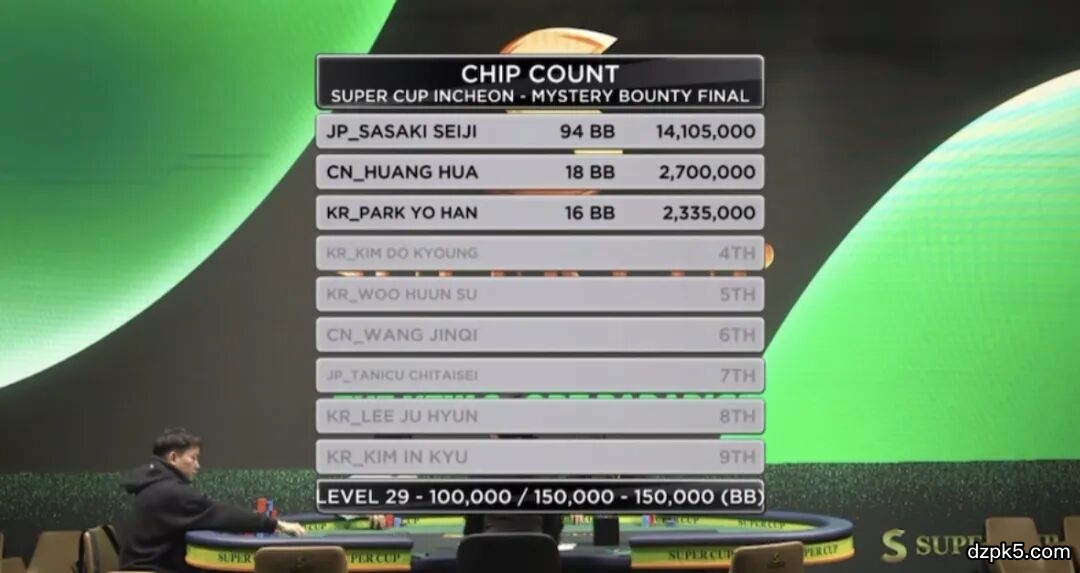 场上剩余唯一一位中国选手黄华,顺利走到前三甲,此时桌上呈现出中日韩三足鼎立的形势……