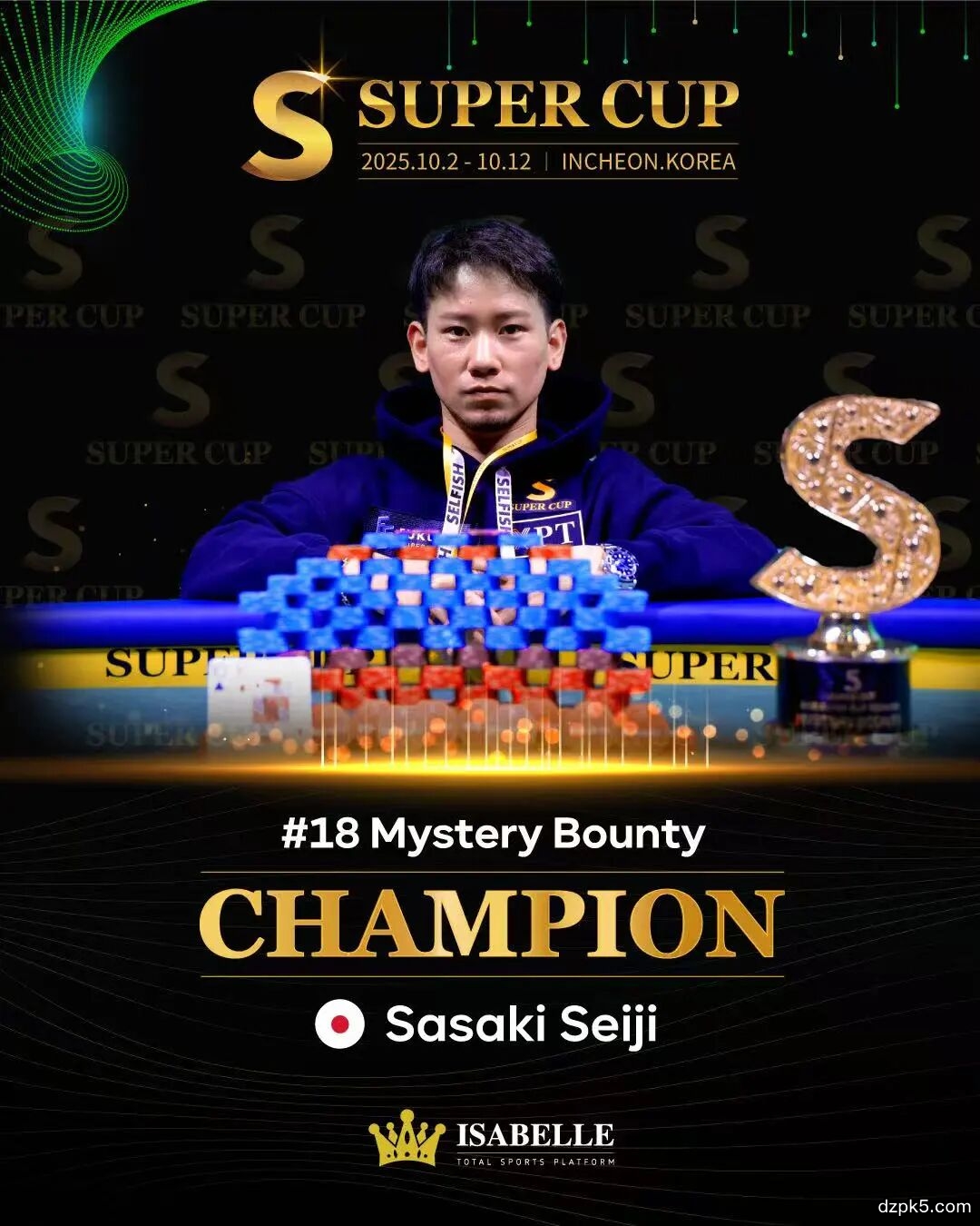 最终,日本选手SASAKI获得了本场神秘赏金赛的冠军,或许好运在前一日已经预示,昨日抽取BOUNTY时,一把抽中250w韩币最大赏金!恭喜他!