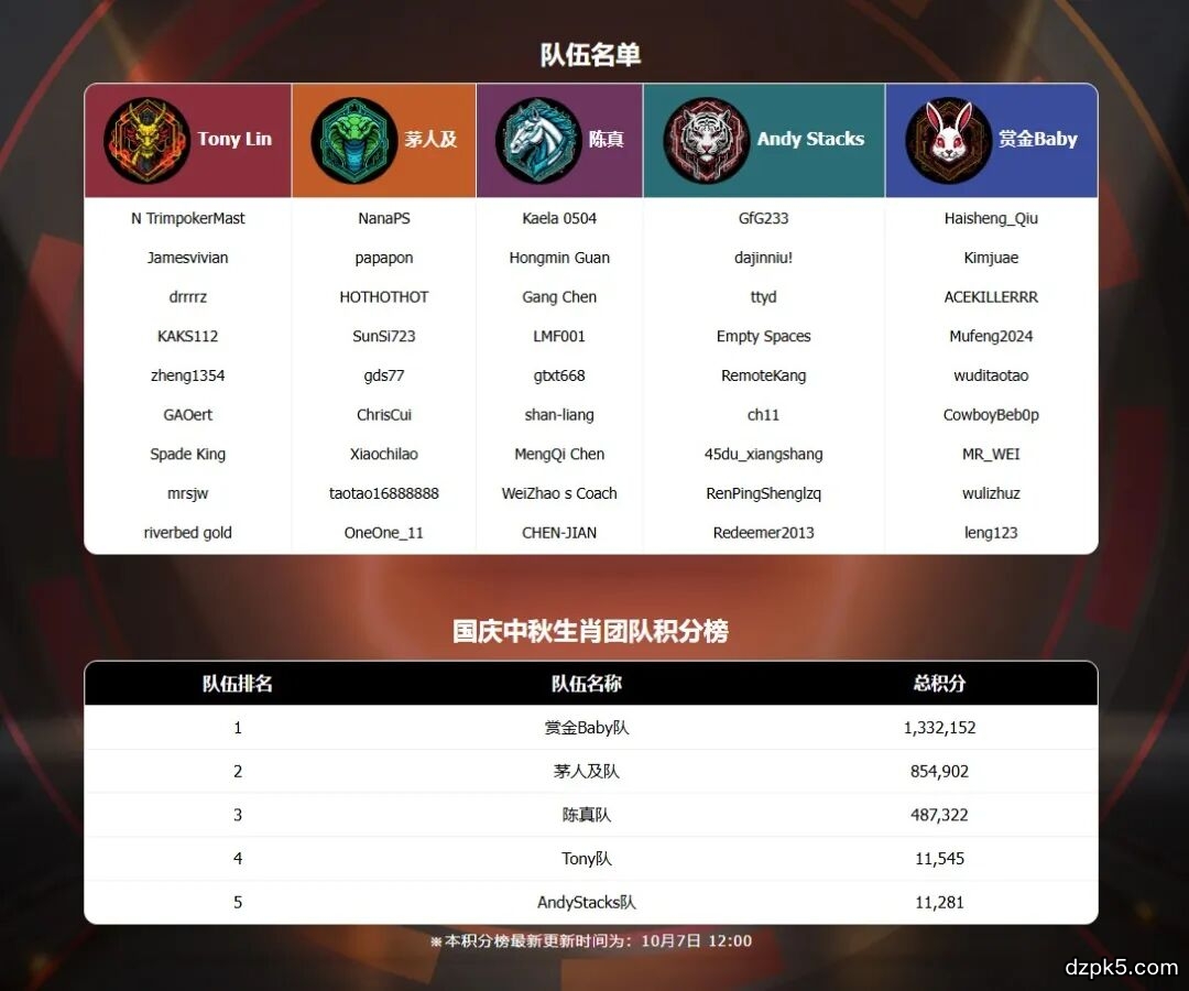 虽然赏金Baby队目前暂居第一,但茅人及队拥有多位高分选手,从9月28日开赛至今始终保持强势表现,展现出坚实的整体实力。
