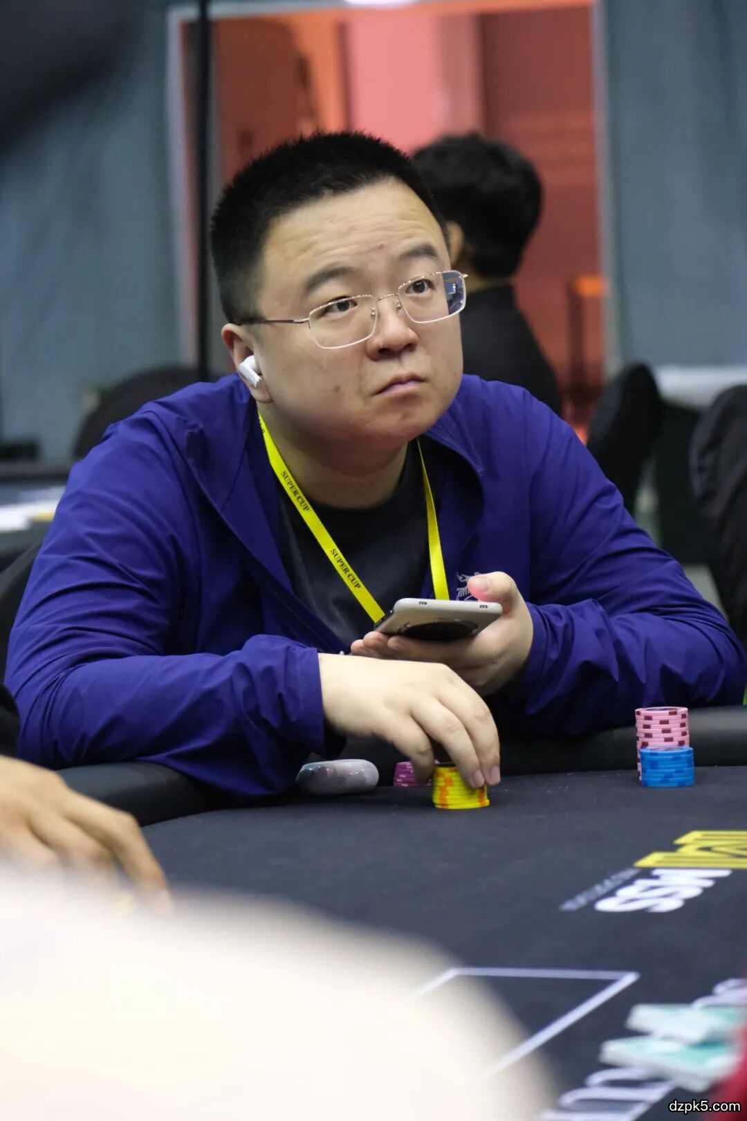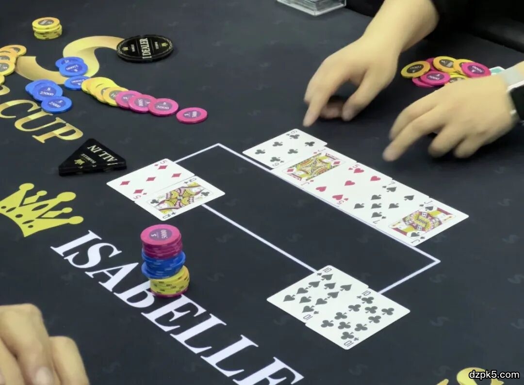 SB check,余云超直接allin5w记分牌量,SB长码没做多久考虑选择call下挑战。