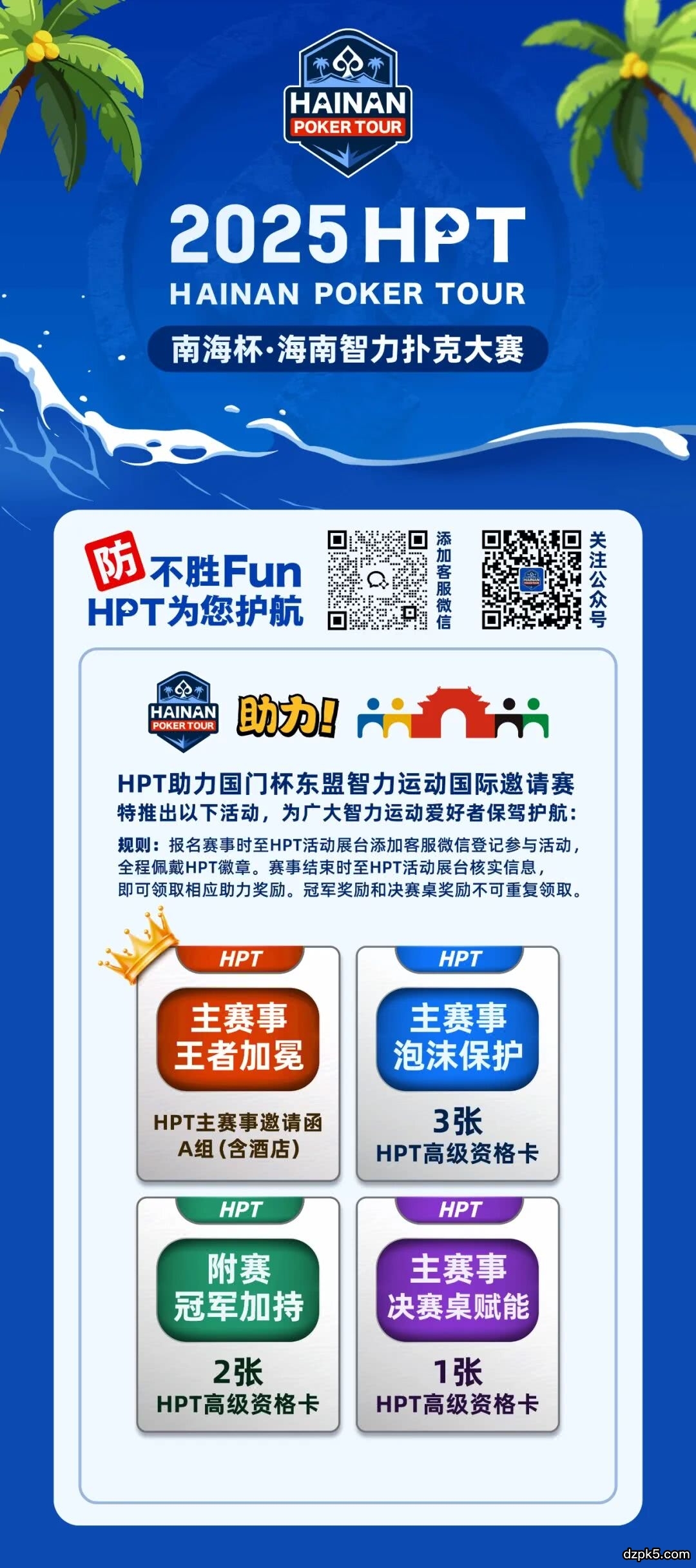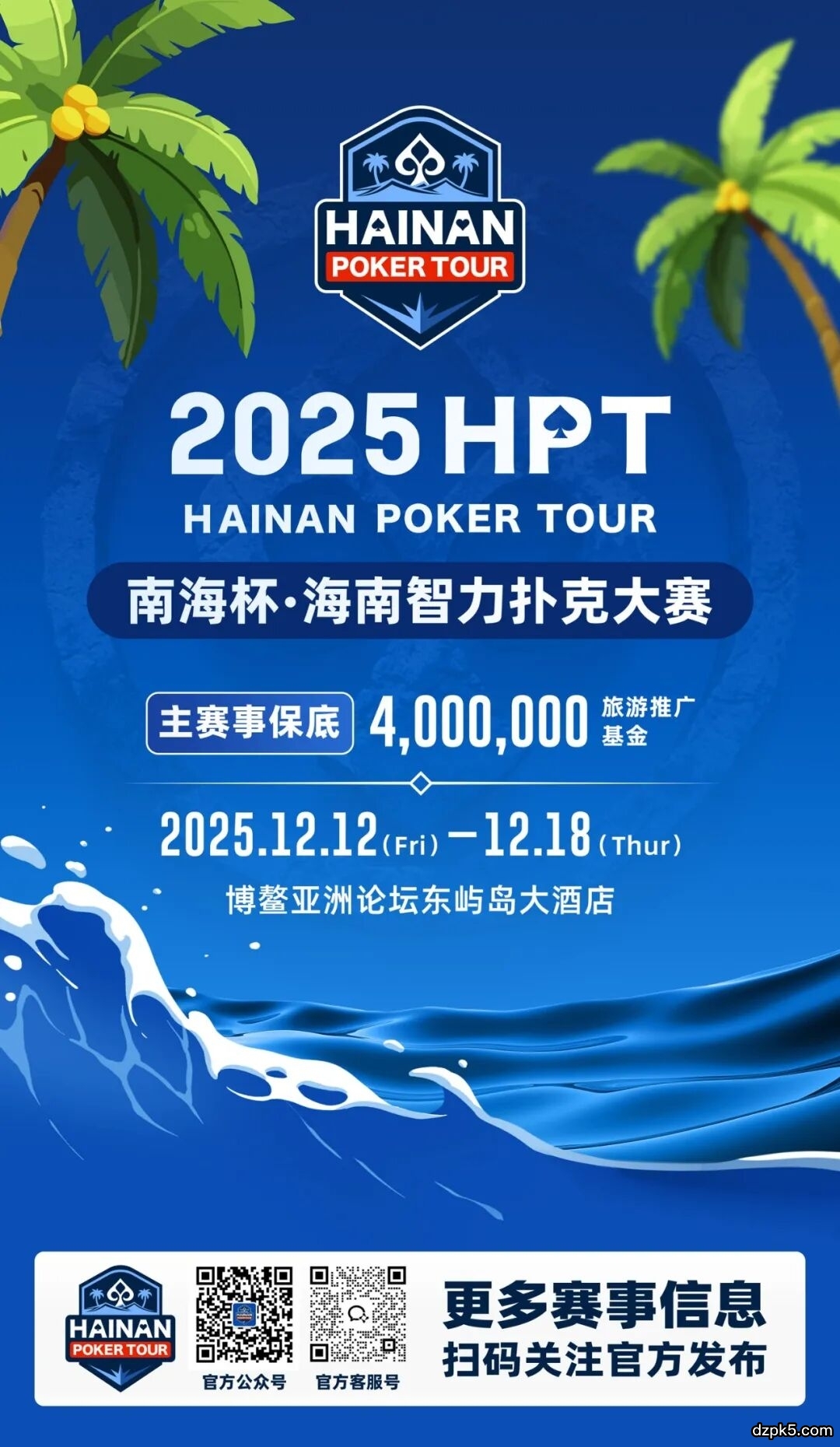 当智力的博弈遇上海岛的浪漫,会碰撞出怎样的火花?2025年12月12日至12月18日,南海杯海南智力扑克大赛将在博鳌亚洲论坛东屿岛大酒店启幕!主赛事保底 400w旅游推广基金,为这场智力盛宴再添重磅助力。