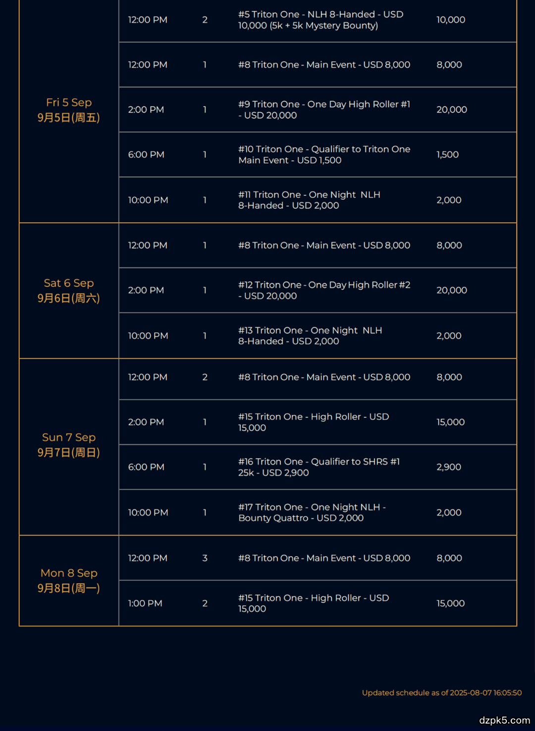 • 2 × $8,000 Triton ONE主赛事门票(适用于后续站点)