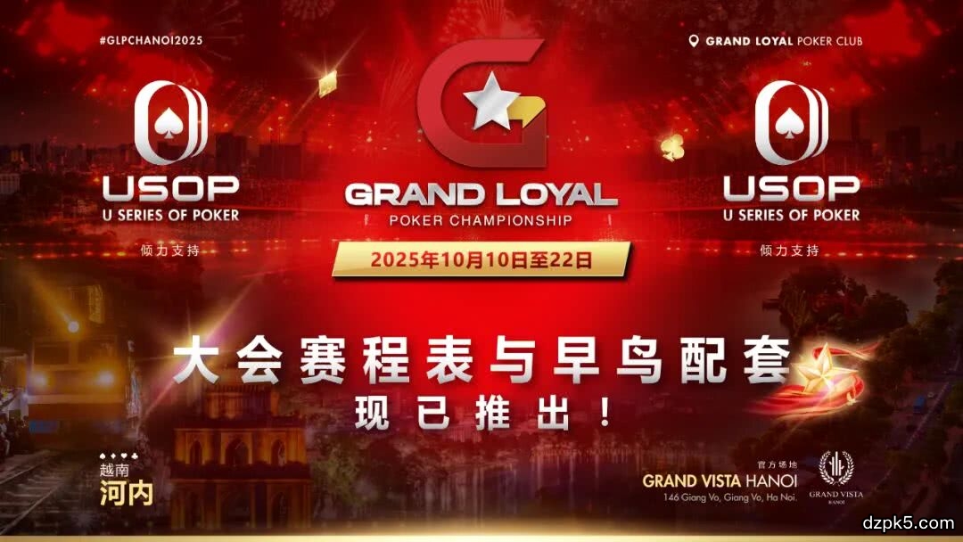 Grand Loyal 扑克俱乐部 (Grand Loyal Poker Club) 的赛程与早鸟套餐(EBP)正式公布 啦!让扑克热情持续不断升温。本次系列赛将于 2025年10月10日至22日 在 Grand Vista Hanoi 酒店举办,势必成为职业选手、新星牌手及广大爱好者争夺荣耀的殿堂。