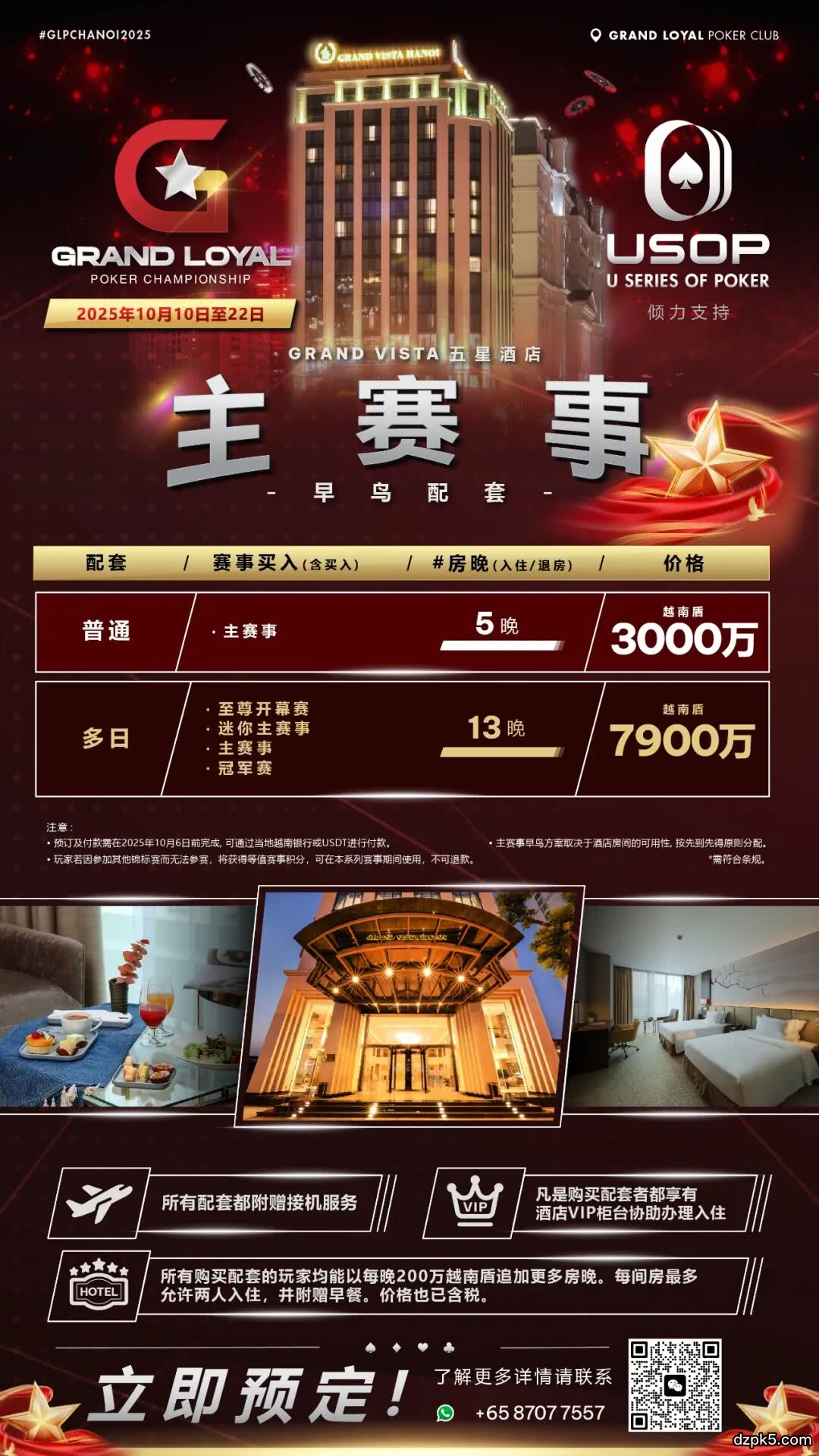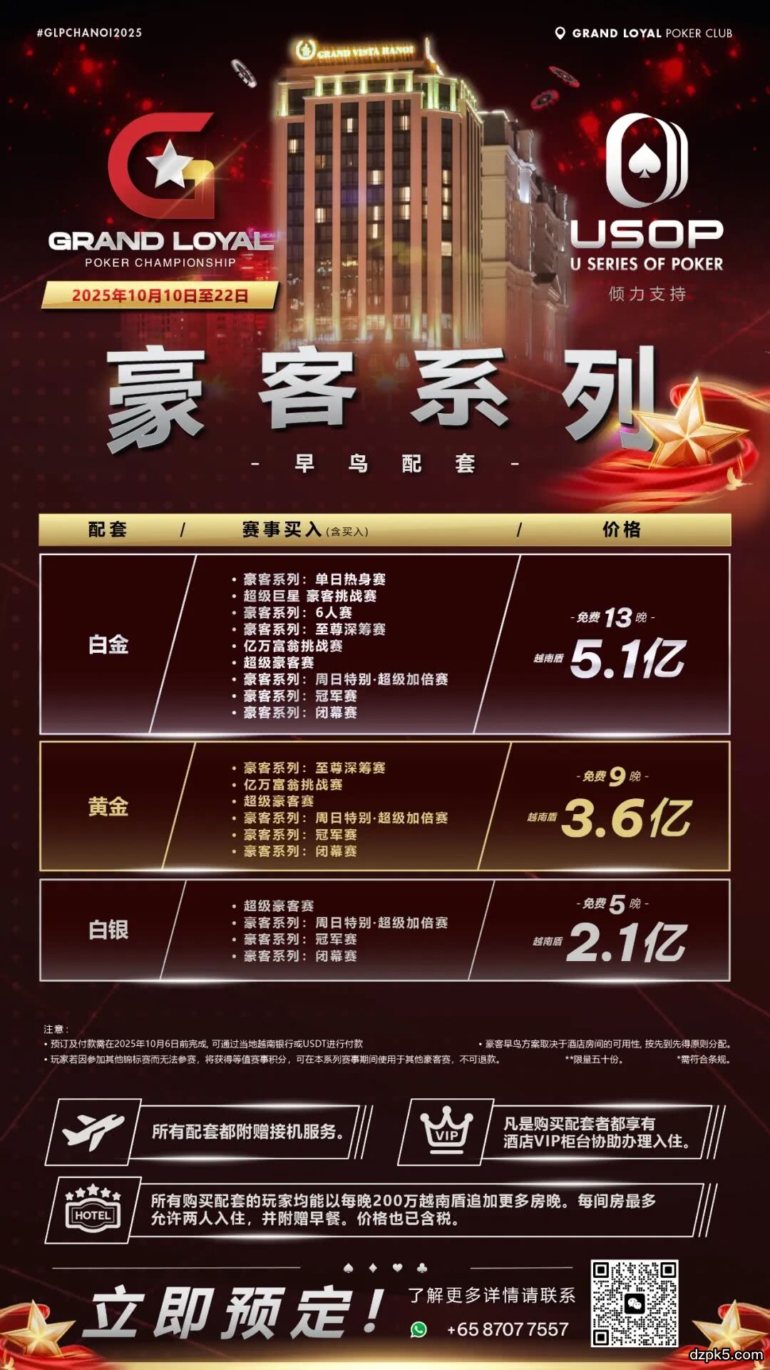 除了精彩的赛程安排,Grand Loyal 扑克锦标赛还首次推出早鸟套餐,为提前规划行程的选手提供极具价值与便利的服务。