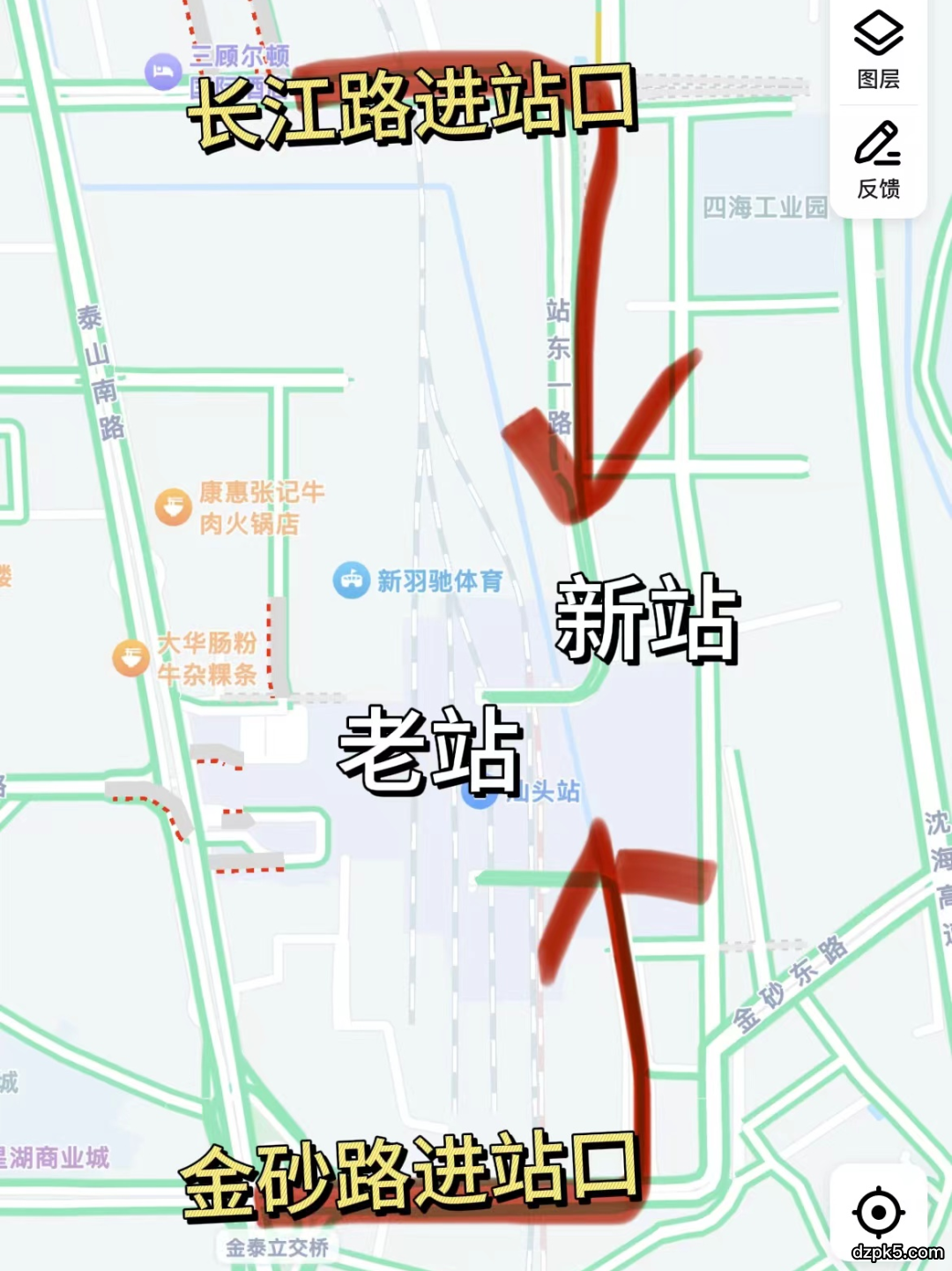 以汕头站南进站口为例(金砂路进站口),按导航指引上高架后靠右行驶,一路直达南进站口,丝滑进站