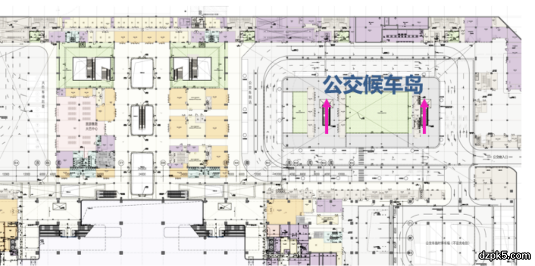 公交候车岛四周为公交车发车位,实现了“人车分流”的设计目标,保障旅客出行安全。