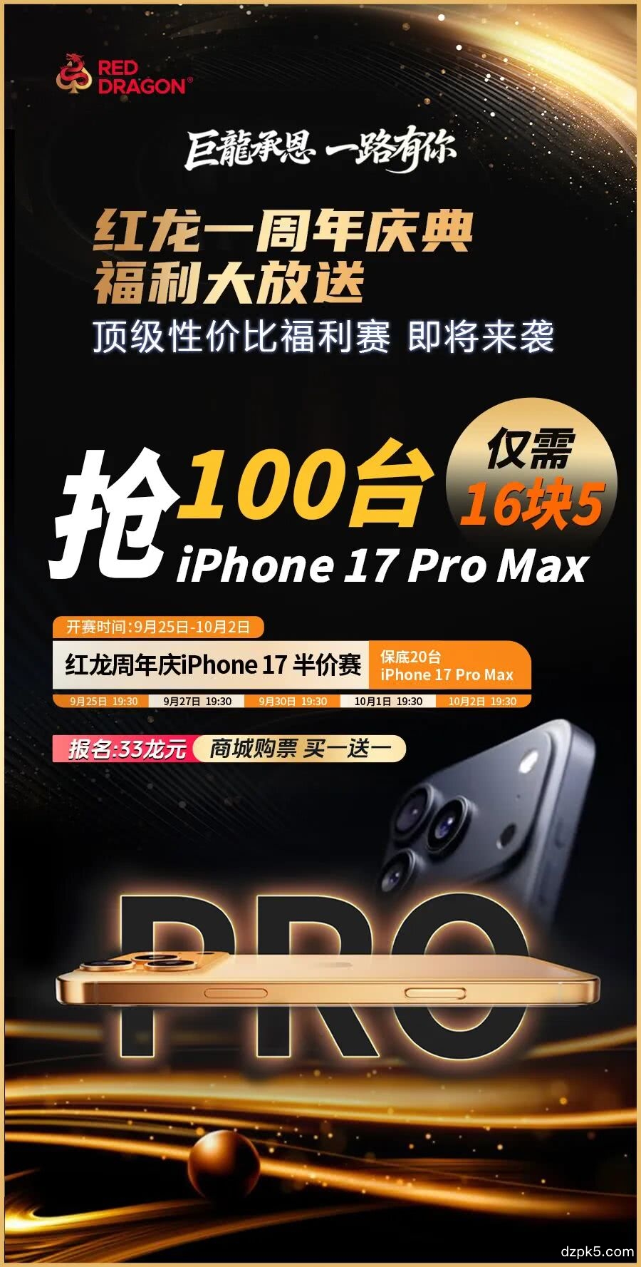 9月25日-10月2日,100台iPhone 17 Pro Max等你来拿!五场比赛接连开战,保底送出20台,总有一台属于你。