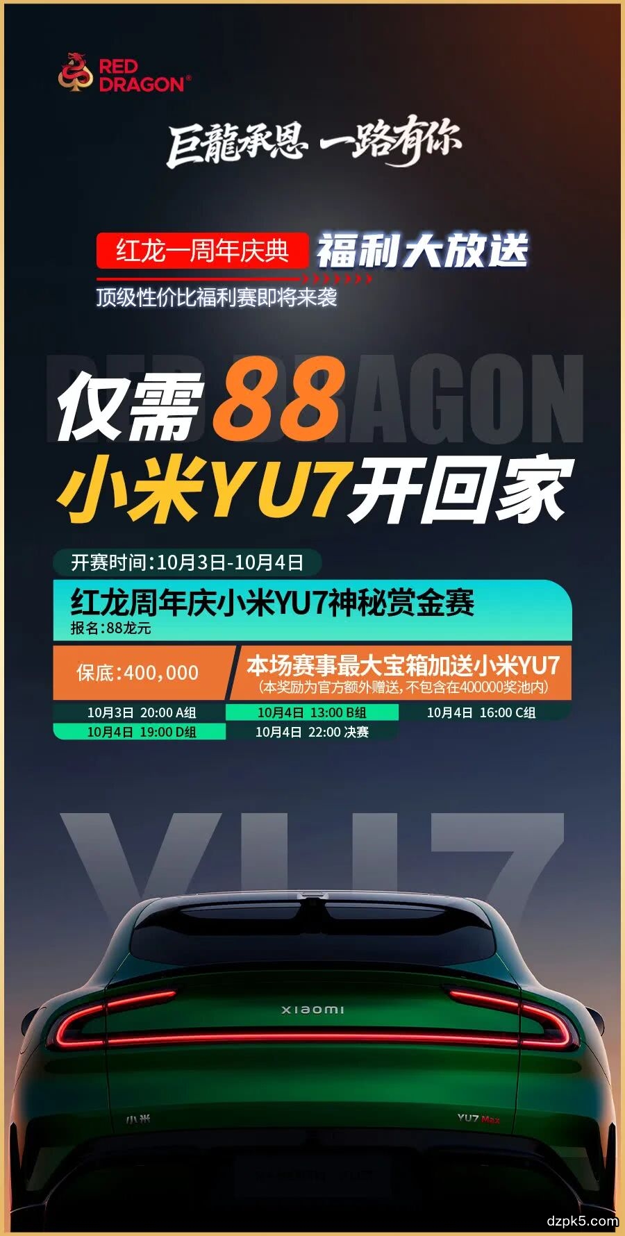 10月3日至4日。总奖池40万龙元、本场赛事的最大宝箱奖品正是一辆全新小米YU7!一辆车的钥匙可能就握在你手中。