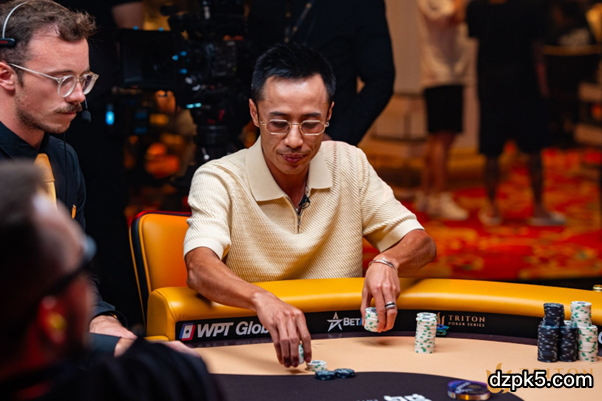 那手牌一路打到河牌,牌面是6♣10♣7♠2♠5♠,Jiang在河牌下注,但Filatov敏锐跟注,凭更大的A高牌赢下。