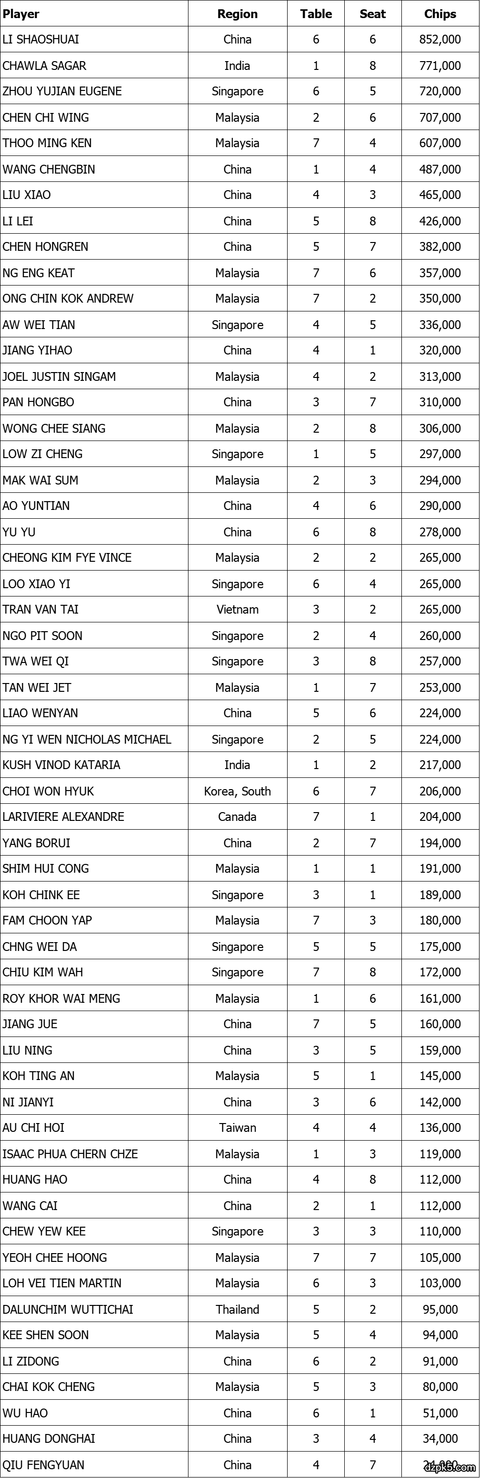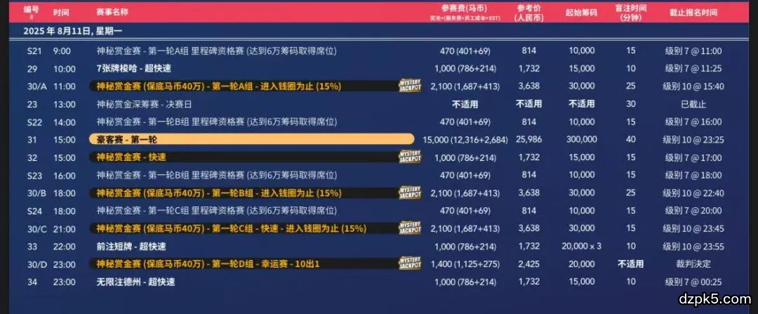 同时进行的关注极高的单日豪客赛(参赛MYR 10000)也在进行中,截至报名时共58人次参与,奖励圈为前8名,冠军可获得MYR 144,000。