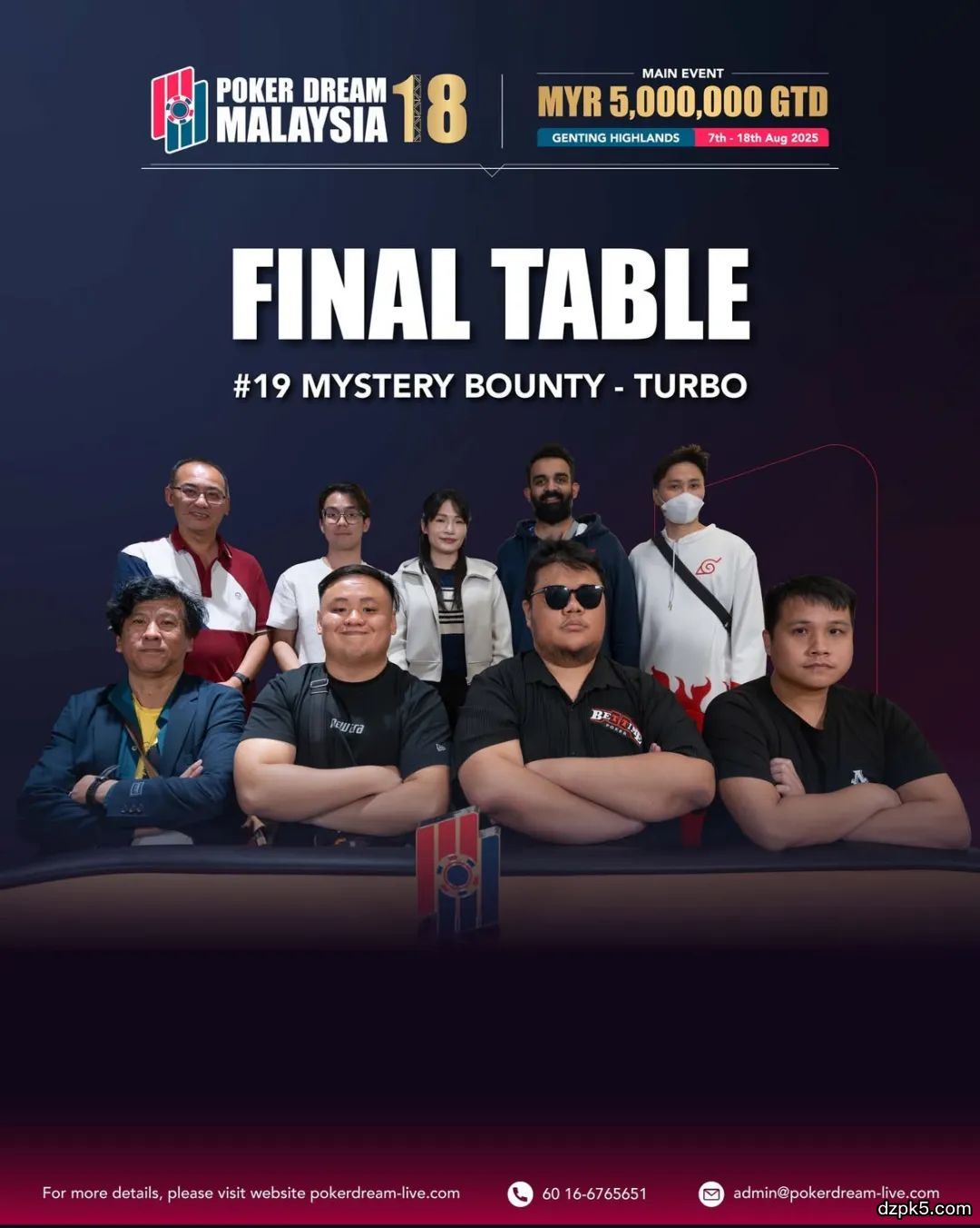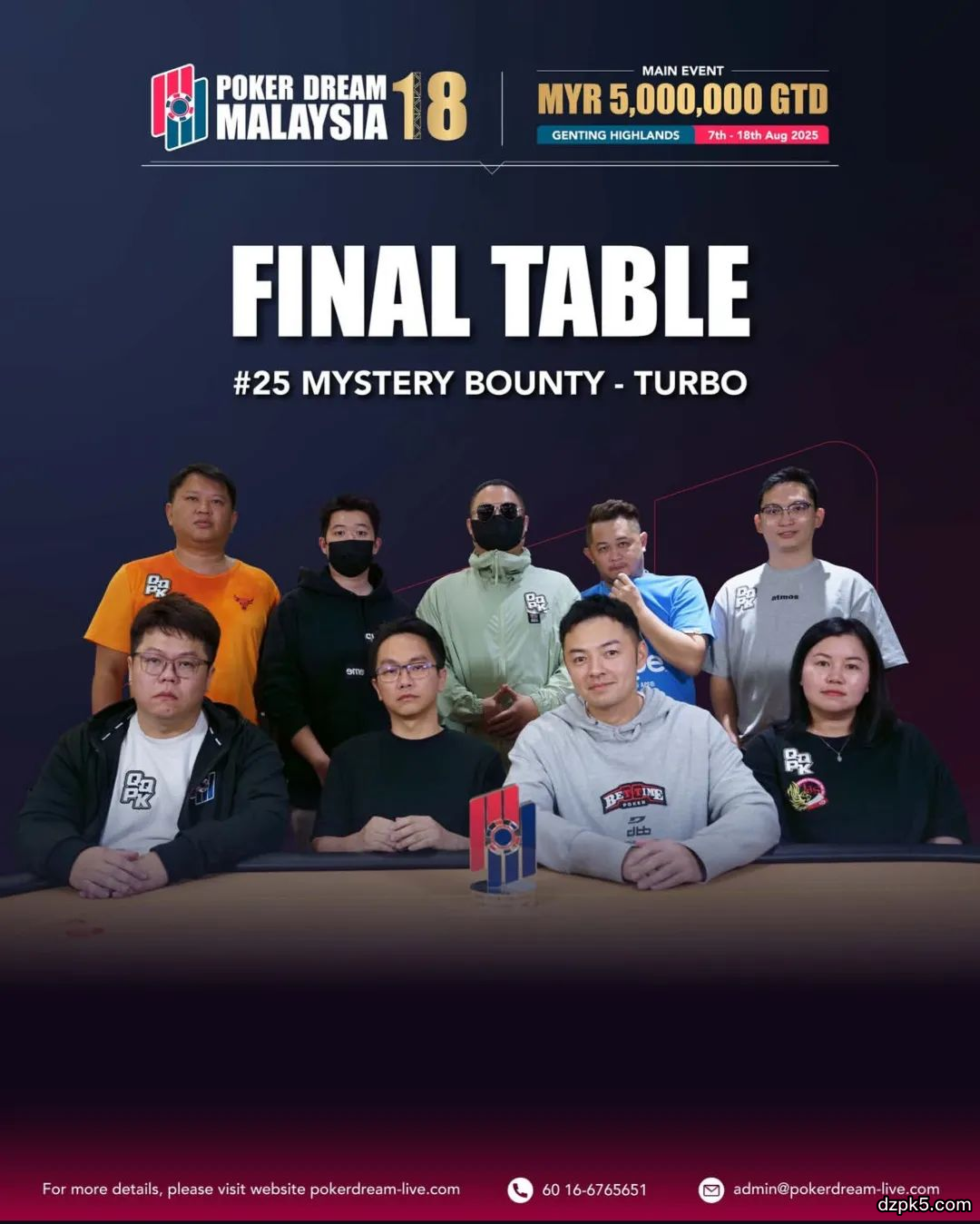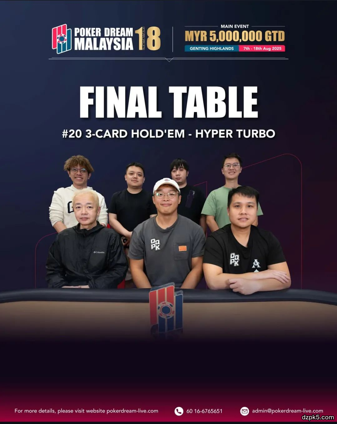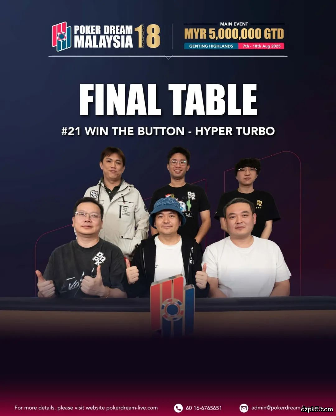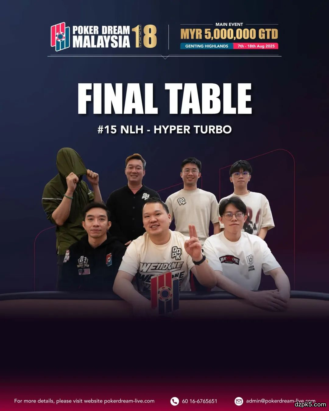 昨天晋级#18 豪客赛的20名选手在8月10日下午3点进行最终对决,其中中国选手Lou MengQing、Zhang CongYa和中国澳门选手Li Kwun NGAI VINCENT冲入7人FT。