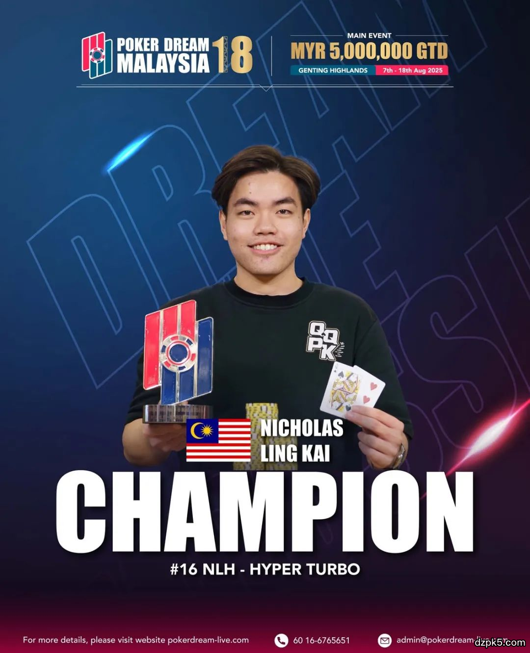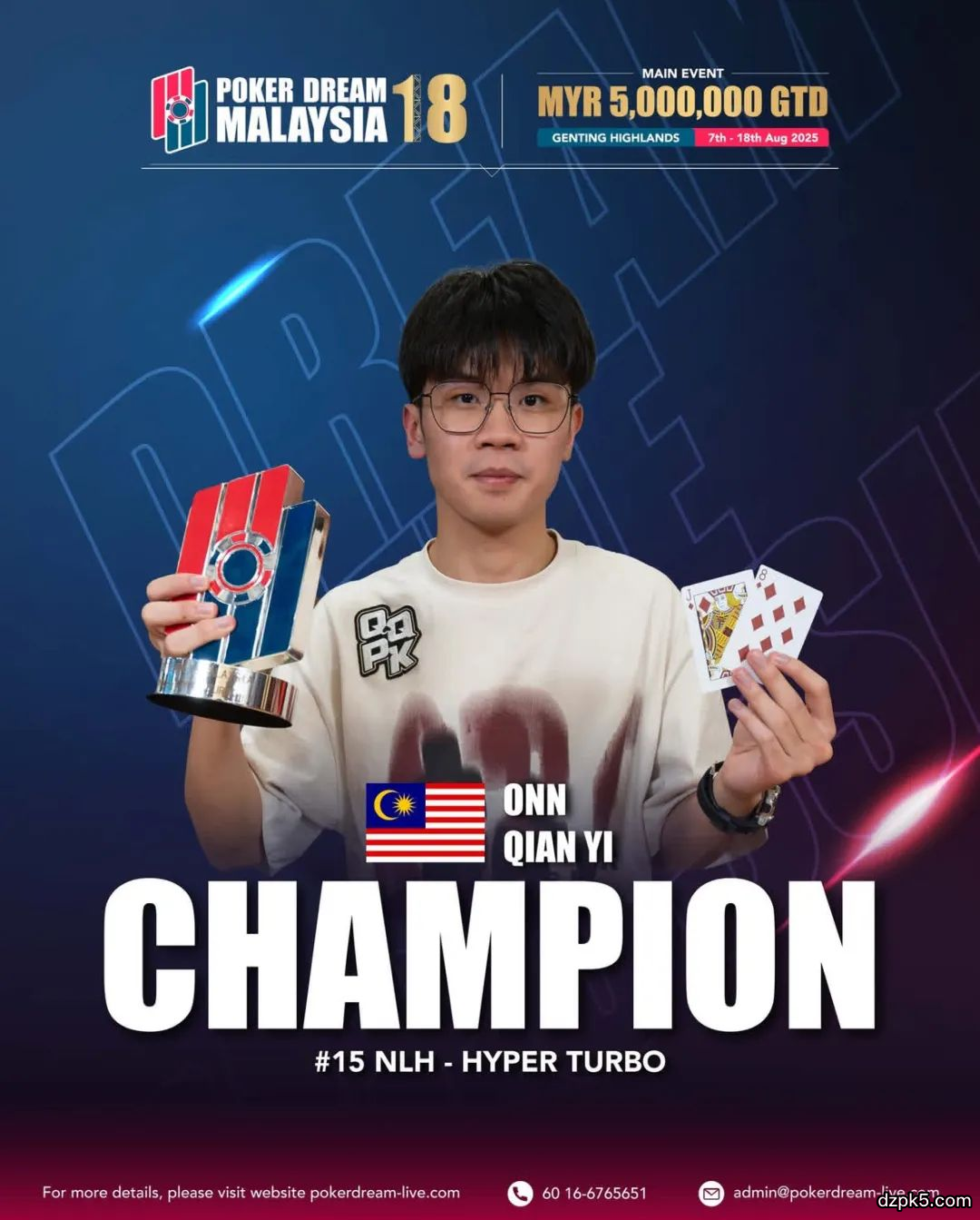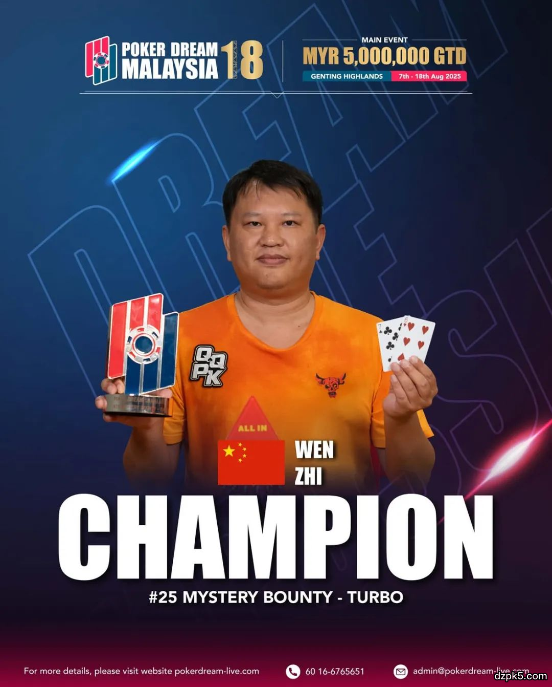 中国选手Wen Zhi在该赛事9人FT中,力压众人,一举拿下冠军奖杯,并获得MYR 95,106奖金,祝贺Wen Zhi!
