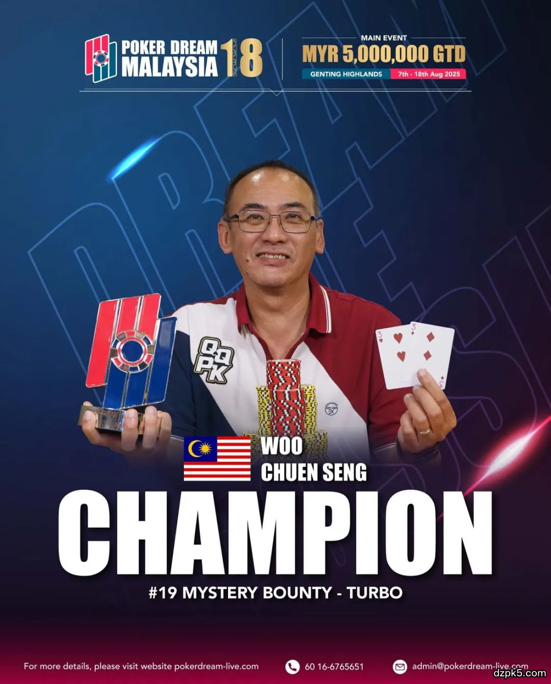 马来西亚选手Woo Chuen Seng从9人FT中脱颖而出夺得该赛事冠军,并获得奖金MYR 22,000,以及神秘赏金MYR 27,610。