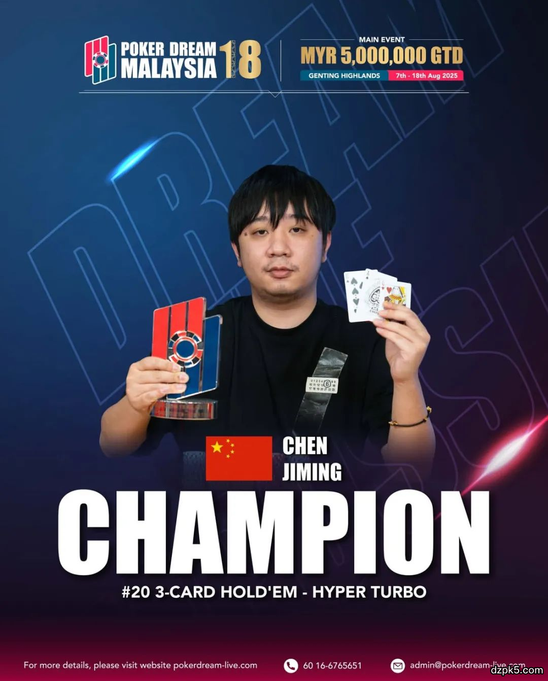 中国选手Chen JiMing一举摘得该赛事冠军,成为PD18吉隆坡第二位摘得边赛冠军的中国内地选手,并获得MYR 12,900奖金,祝贺Chen JiMing。