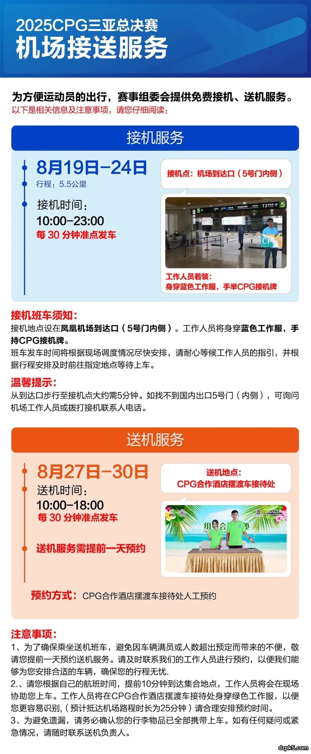 为方便运动员的出行,赛事组委会安排了三亚凤凰机场接送服务、各赛事合作酒店摆渡车接送服务,请参赛运动员查阅下方接送安排服务细则。