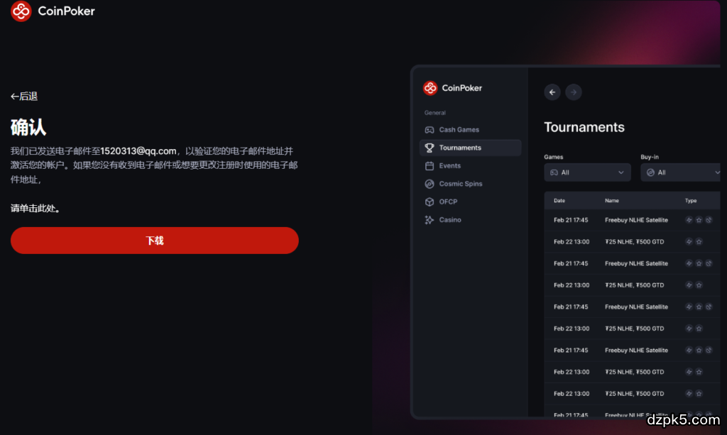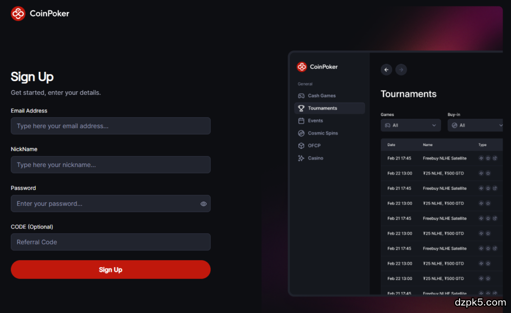 首先,我们需要进入官网注册,点击进入Coinpoker注册地址