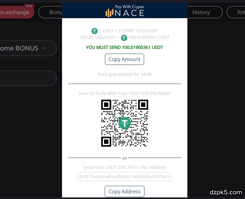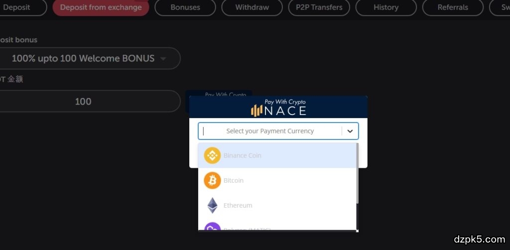 选择100%的赠送,然后选择100U,第一次建议100U,先熟悉体验,然后点击右边的NACE图片。