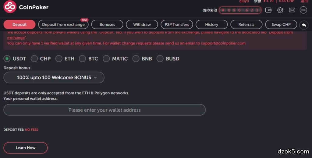 然后点击Withdraw,选择USDT到咱们的钱包地址就可以完成提款,还是非常方便的。