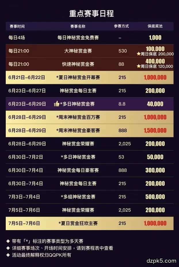 赏金主赛!7月5日-7月6日夏日赏金狂欢主赛等你挑战!GTD高达1,000,000!