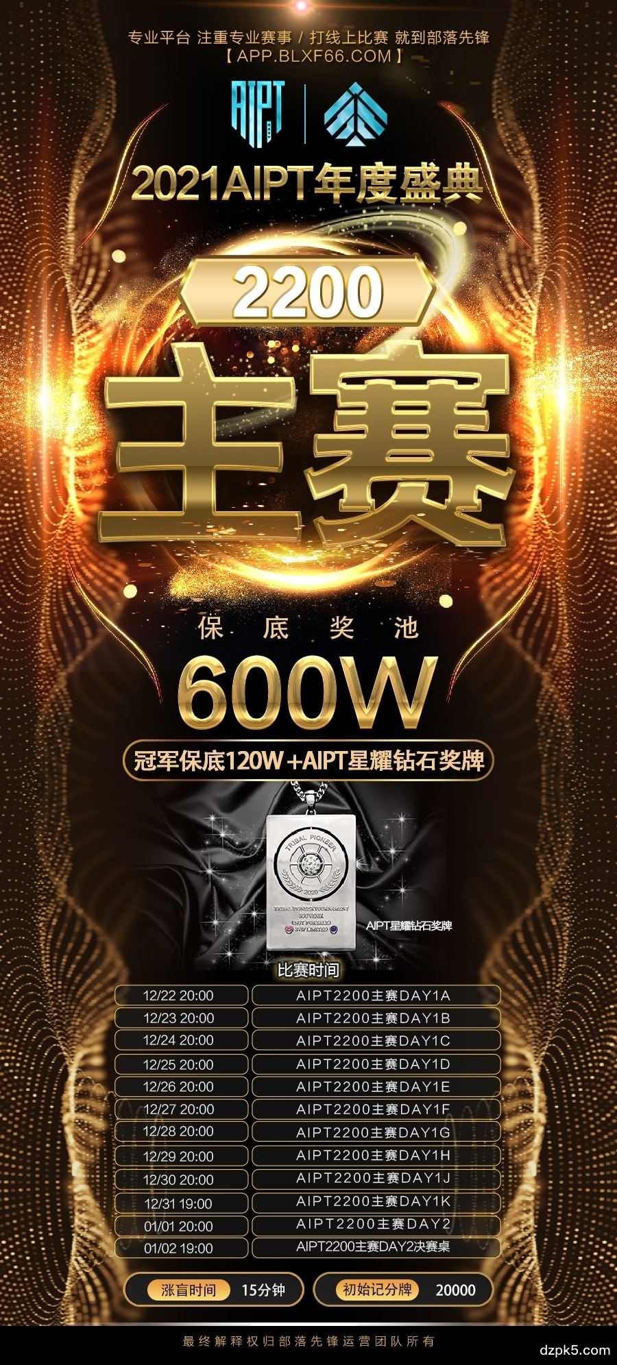 12月22日至1月2日 AIPT年度盛典主赛:保底奖金:600w 冠军奖金价值120w保时捷跑车一台