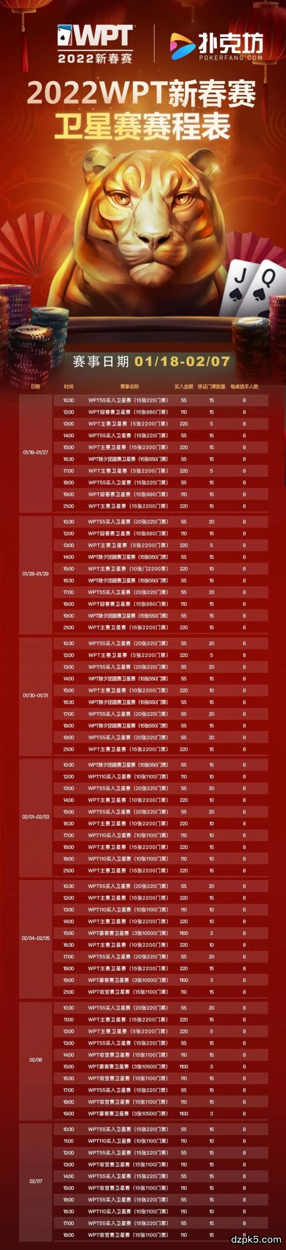 二2022年虎年WPT新春赛赛程表