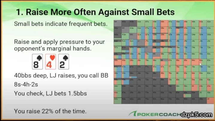 1、技巧 1:面对小额下注时,用听牌加注