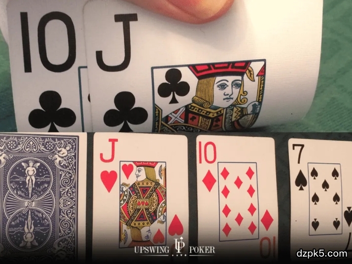 首先,分析公共牌面,看看公共牌面是否存在顺子听牌或同花听牌的可能性。为简单起见,我们假设你首先行动,只有一个对手。