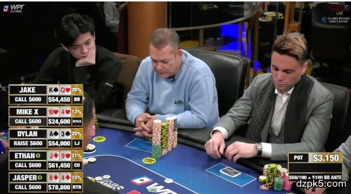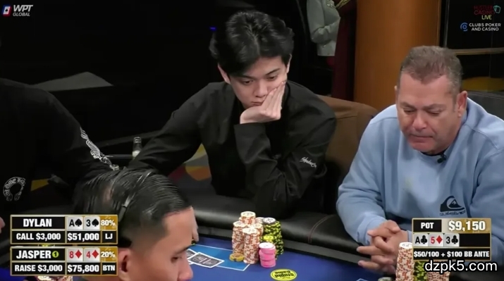 Ethan弃牌,Jasper 3bet到$3,000,只有Dylan跟注。底池提升至$9,150。