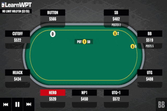 线上无限注德州扑克常规局,盲注级别:$2/$5,桌上玩家筹码量如下图。
